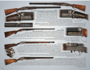 LOT 413 Unique Belgian Defourney & Fils Three Trigger Drilling - Serial no. 12240, 12/8mm gauge, 25 1/2 inch solid rib bbl., blue/casehardened finish, walnut stock. Beaded blade front and manual flip up rear notch sight marked for 150 yards with platinum sighting line, 2 3/4 inch chambers, ejector on the rifle barrel, standard Belgian proofs on the underside with “8x60” and “7.8” and “12-70” bore and chamber markings, and modified/full chokes. Casehardened action and lock plates with light decorative engraving with “BELGIQUE” marked on the left lock, and a unique three trigger design. Checkered forearm with Anson style push rod latch and nicely figured pistol grip stock with vented White Line recoil pad. Length of pull is 13 3/4 inches, weight 8 lbs. 2 oz.. CONDITION: Fine. The barrels have 85% of the slightly plum hued refinished blue with some mild edge wear, and small surface scratches. The action and locks have a mostly gray patina with 40% original muted case colors and some light spotting. The wood is also fine with some visible oxidation and light pitting on the forearm knuckle, and freshened checkering with rubbed oil finish on the buttstock, and newer recoil pad. Mechanically excellent. Estimate: 1,600 - 2,500