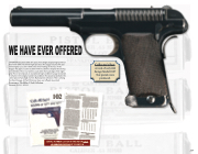 CONDITION: Excellent with 95% plus of the bright original high polished blue finish with only minor high spot wear. The trigger retains 90% plus vivid original case colors with some minor fading on the face of the trigger. The grips are also excellent with nice distinct original checkering on both sides. There is a hairline crack down the back edge of the right grip. This is not only just an exceptional high condition Savage test pistol, it remains in the original unaltered condition. This would certainly be the center piece of any high end U.S. Martial pistol collection. This is among the finest Savage .45 Test Pistols we have ever offered at auction! Provenance: The Milan J. Turk Collection.