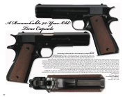 difficult to obtain especially in this exceptional high end condition. They exhibit all the early exceptional fine workmanship from the Colt factory to include a beautiful Colt high polish commercial blue finish, with the factory fitted fully checkered walnut grips. The left side of the slide is marked with the Colt two line elongated Hartford address and 1897-1913 patent dates. The right side is marked “COLT/SUPER .38/AUTOMATIC”, followed by the Rampant Colt trademark. There is a half-moon front sight and a square notch dovetail rear sight. It is fitted with the correct unmarked, Colt .38 Super barrel with an all blue finish and factory polished feedramp and chamber area. The left side of the trigger guard bow is stamped “1/Colt VP inside a triangle” proofmark with the opposite side stamped with the number “20” and the serial number stamped on the frame above the trigger. The magazine has a two tone finish, is marked “38 AUTO/COLT” on the bottom and has the correct reinforcing rib in the center of the magazine. It has the correct original parts such as the arched and checkered mainspring housing, short horned grip safety, thick checkered thumb safety and checkered slide stop release. CONDITION: Excellent plus with 98% plus of the original blue finish overall with just a hint of wear on the very front edges of the slide. The grips are also excellent with a nice dark color overall, sharp checkering and only a couple of handling marks. Mechanically excellent. A truly exceptional high condition first year production Colt Super .38 pistol. Provenance: The Milan J. Turk Collection. Estimate: 6,500 - 9,500