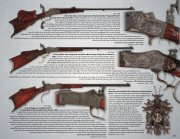 octagon bbl., blue/casehardened/silver finish, walnut stock. Built by the shop of Babette Stahl around