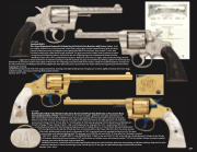 Cross Recipient John A. O’Toole - Serial no. 9147, 32 cal., 6 inch round bbl., gold finish, pearl grips. Manufactured in