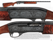 MODEL 1100SF” at the center, and the serial number at the rear in banners. All four guns display three panel game scenes on each side