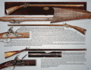 cal., 44 inch octagon bbl., brown/silver/brass finish, curly maple