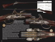 below the faceted priming pans and are engraved with border, scroll, and martial trophy designs, and have