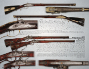 rococo style scroll engraving. The rifle is equipped with double set triggers. The gilt brass mounts feature a variety of hunting