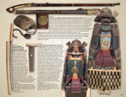 kabuto helmet. The smooth stock is decorated with brass panels shaped and engraved