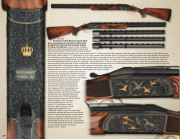 prey swooping on a trio of gold mallards on the right all bordered by a gold inlaid line. The toplever shows a gold inlaid coronet as does the underside of the action just