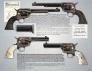Serial no. 163650, 44-40 WCF cal., 4 3/4 inch round bbl., blue/casehardened finish, relief carved pearl grips. Manufactured in 1896,